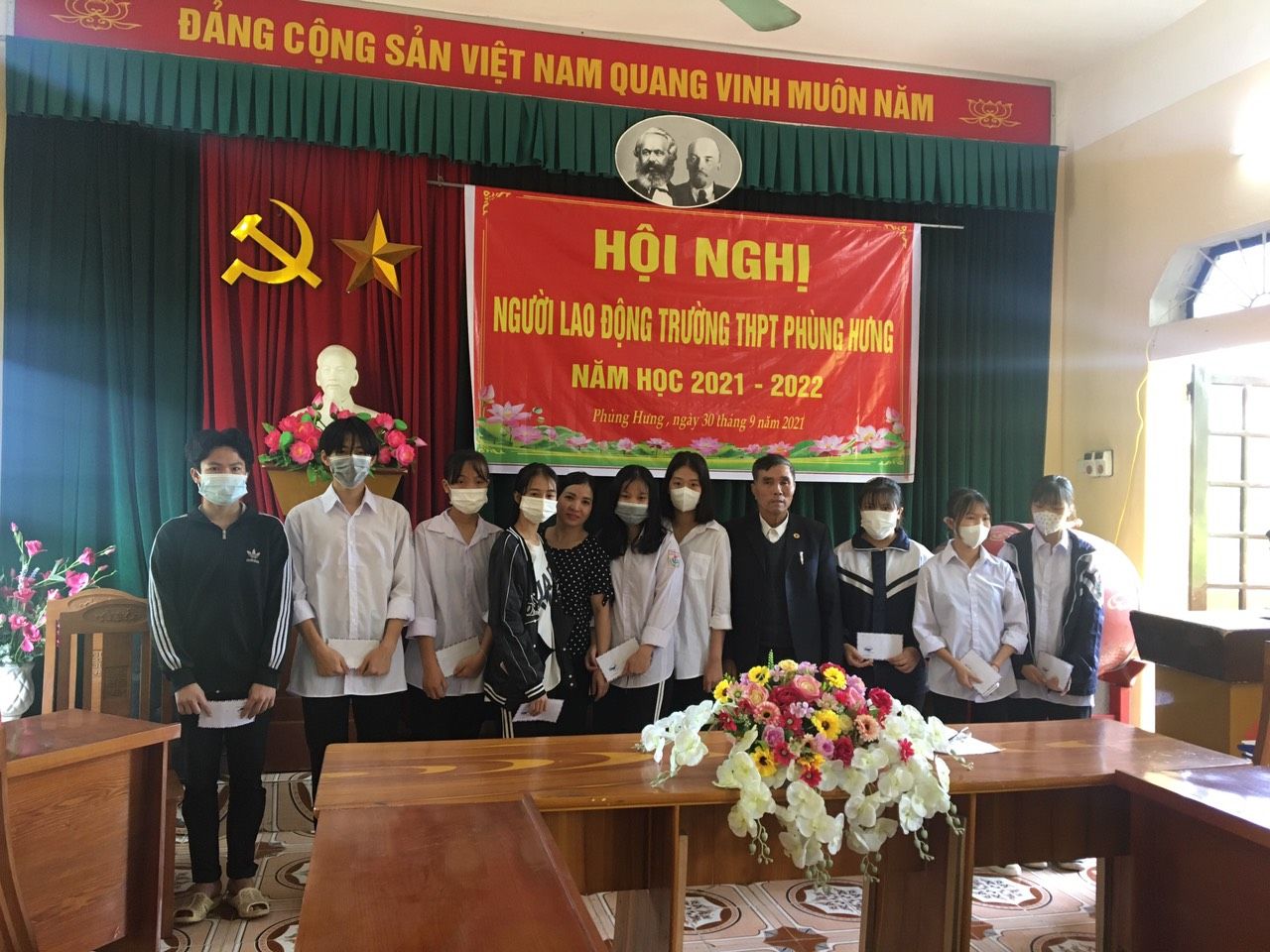 Cũng trong ngày hôm nay 20/10, thay mặt Công đoàn trường THPT Phùng Hưng, thầy Đỗ Quốc Hải - Phó hiệu trưởng nhà trường đã tặng những phần quà động viên, khích lệ những học sinh nghèo vượt khó.