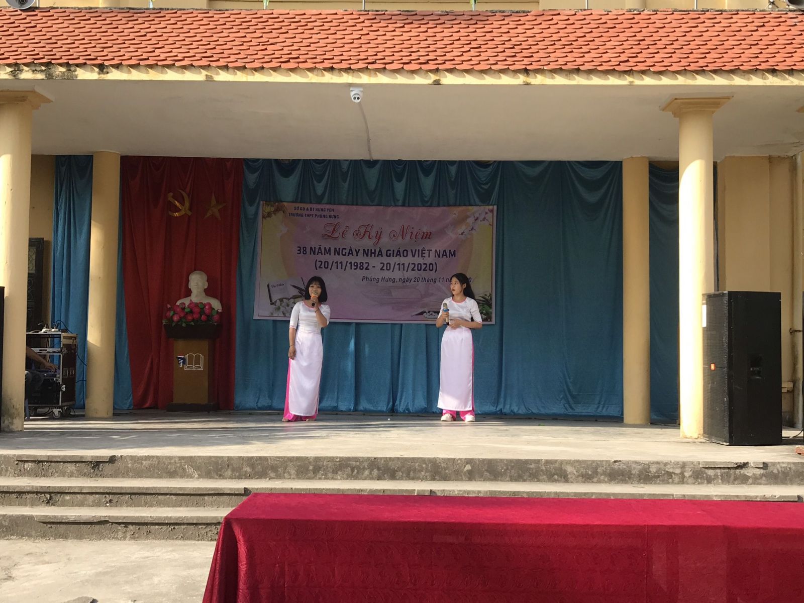 Chiều ngày 19/11 tại sân khấu trường THPT Phùng Hưng các em học sinh các lớp chuẩn bị các tiết mục văn nghệ chào mừng ngày nhà giáo Việt Nam