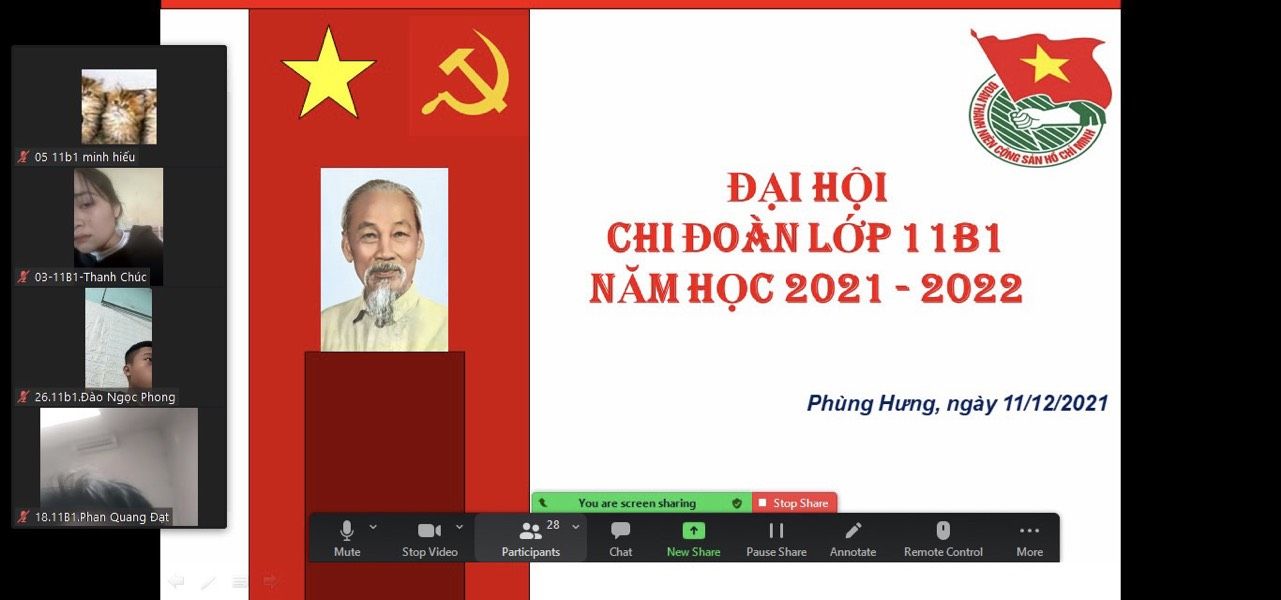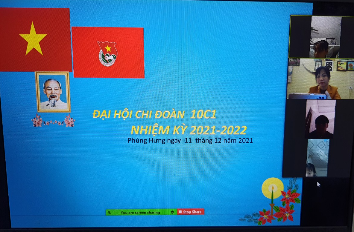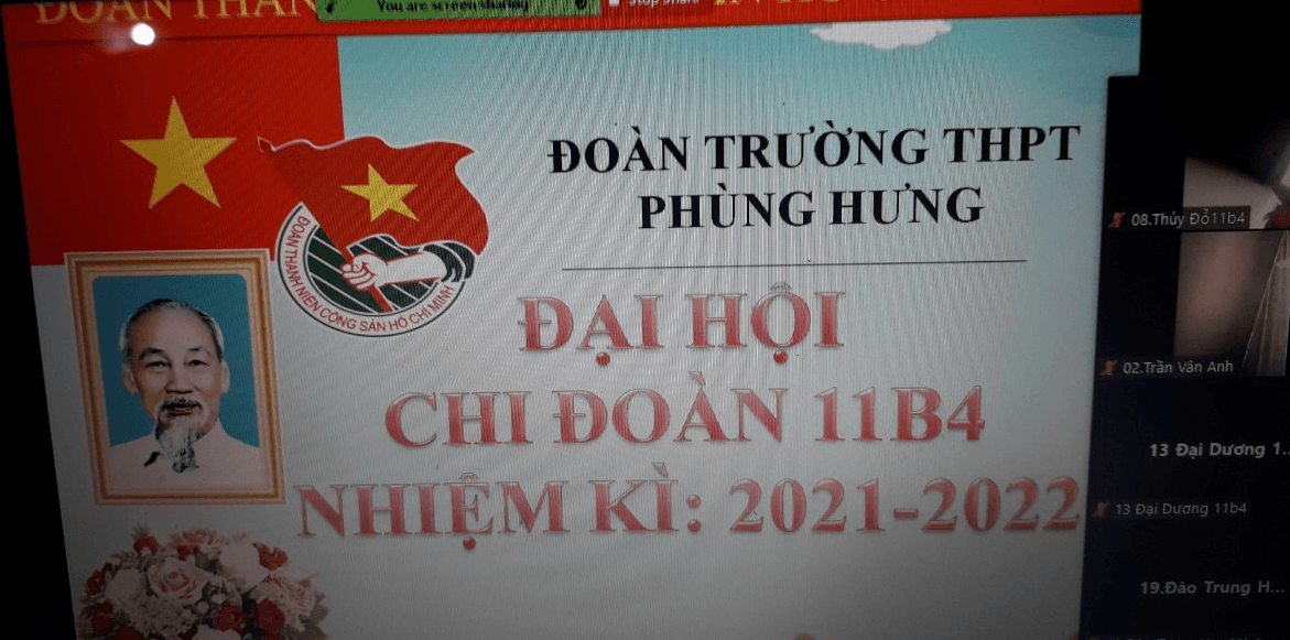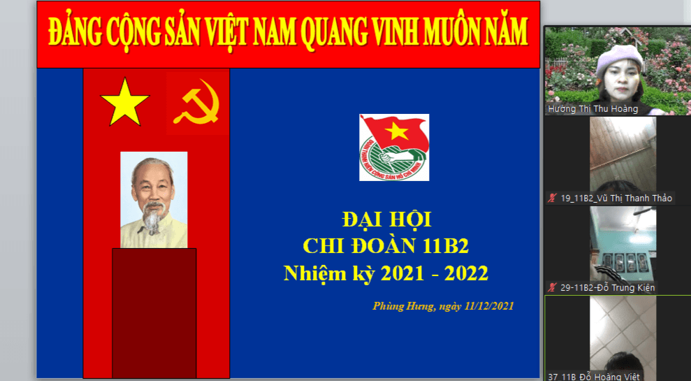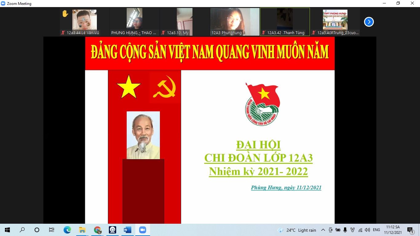 Ngày 11/12/2021 Đoàn trường THPT Phùng Hưng tiến hành Đại hội chi đoàn các lớp vào tiết 5, được tổ chức tại phòng Zoom của lớp dưới sự giám sát của GVCN và Ban thường vụ Đoàn trường dự.