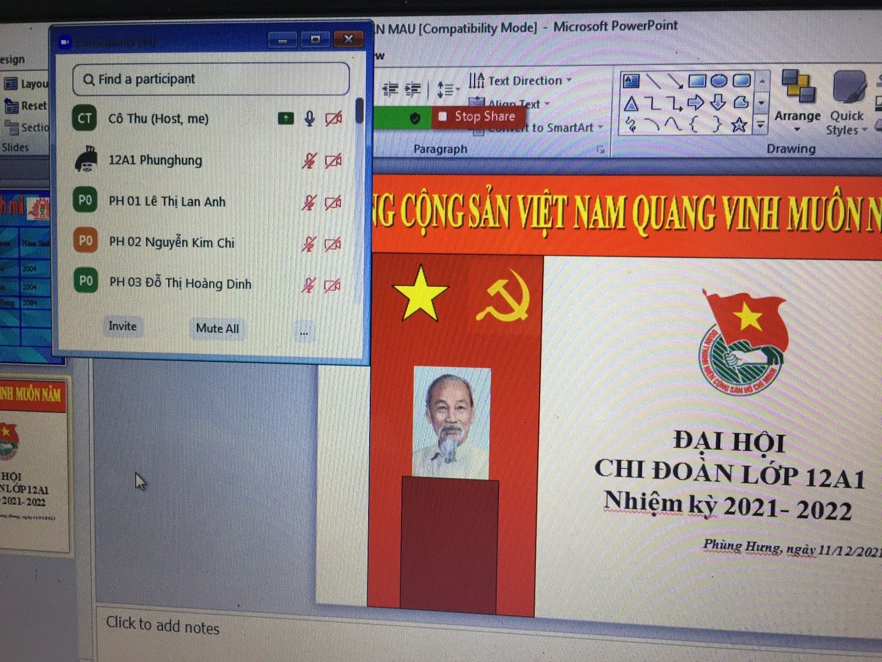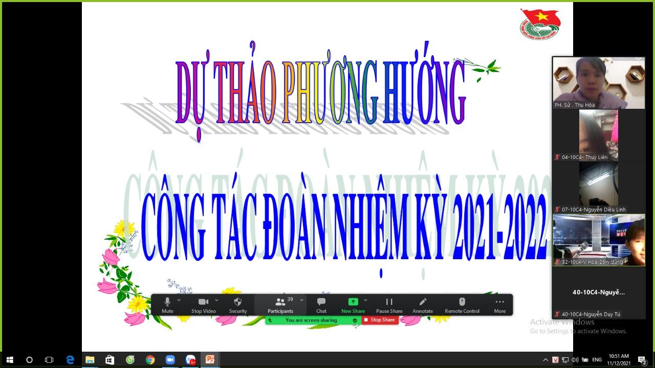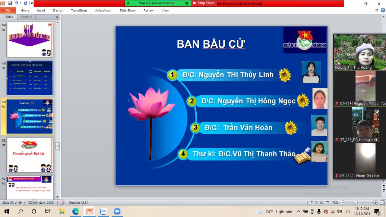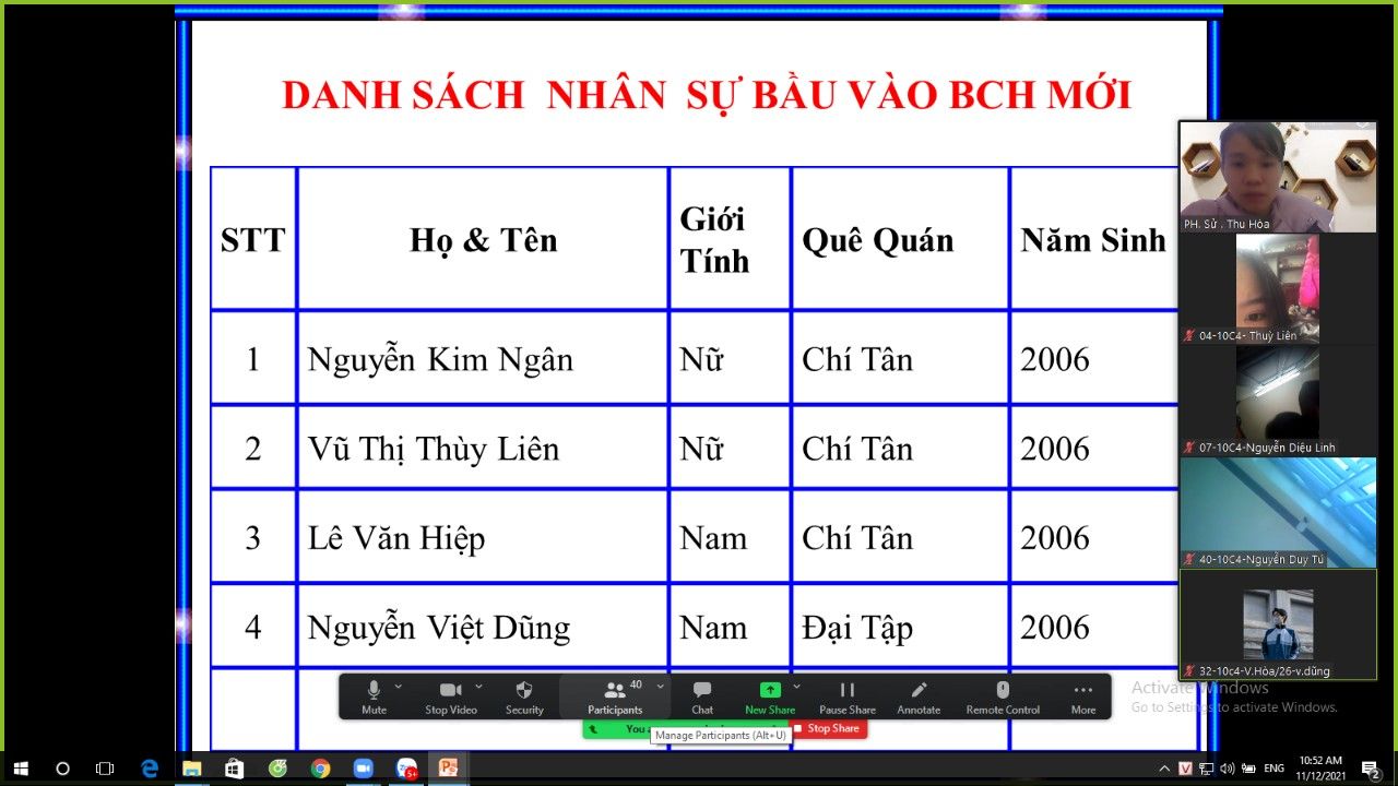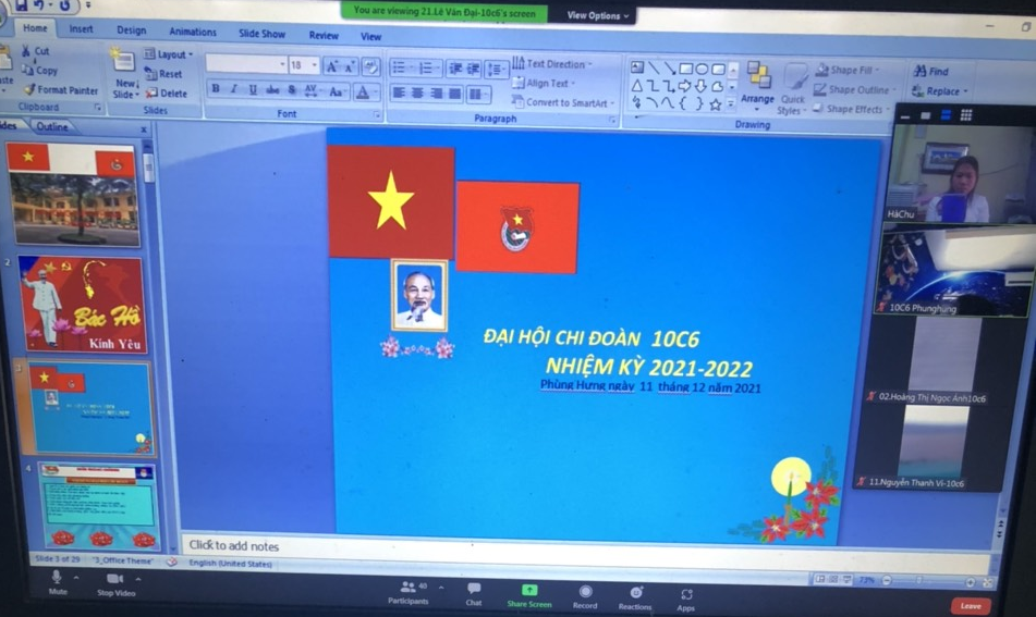 Ngày 11/12/2021 Đoàn trường THPT Phùng Hưng tiến hành Đại hội chi đoàn các lớp vào tiết 5, được tổ chức tại phòng Zoom của lớp dưới sự giám sát của GVCN và Ban thường vụ Đoàn trường dự.
