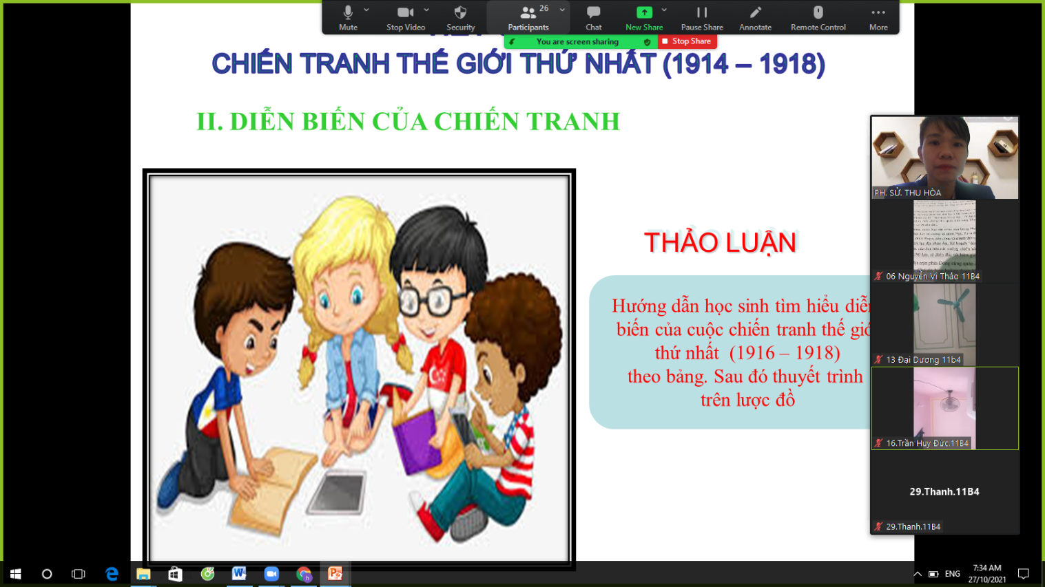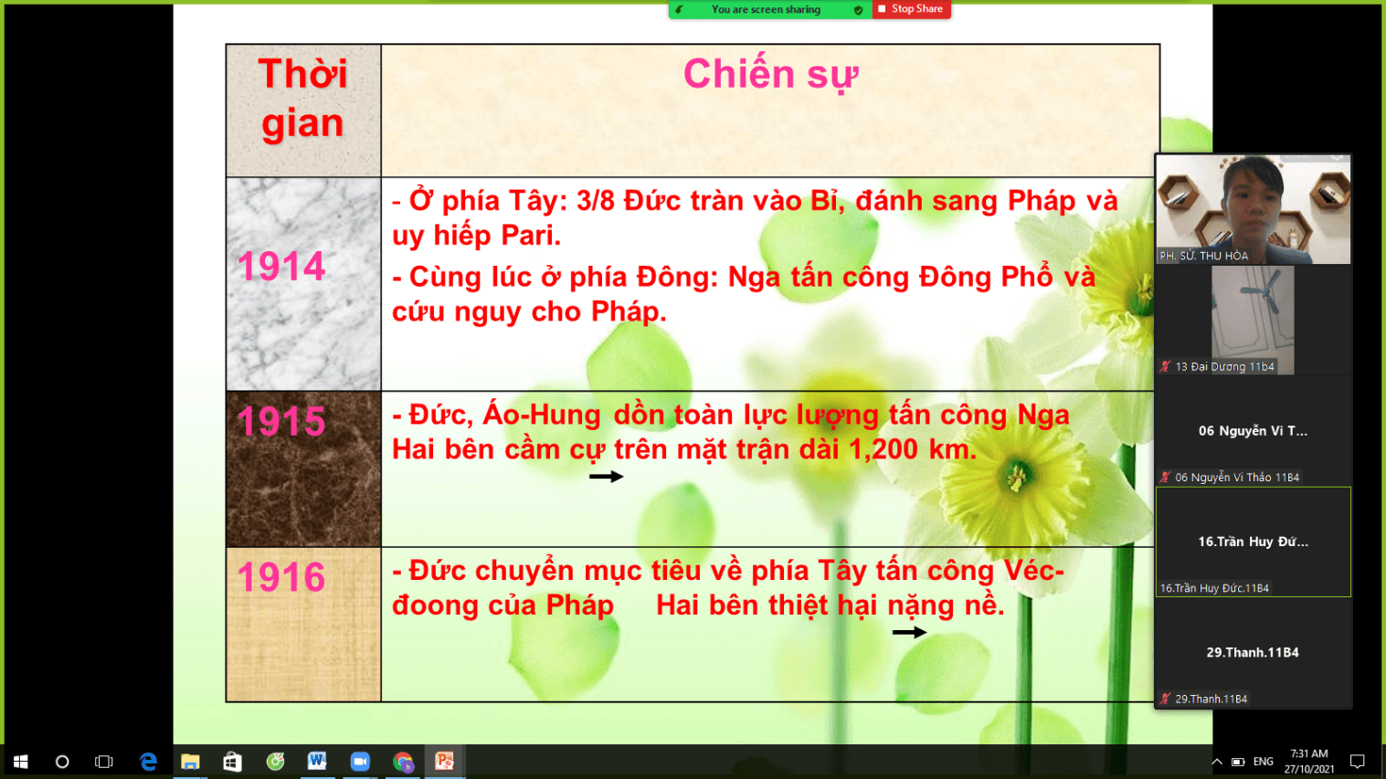 Nội dung bài tìm hiểu Chiến tranh Thế Giới thứ nhất(1914 – 1918) với nhiều hình ảnh phong phú, chân thực đã thu hút học sinh vào buổi học một cách sôi nổi, hào hứng.
