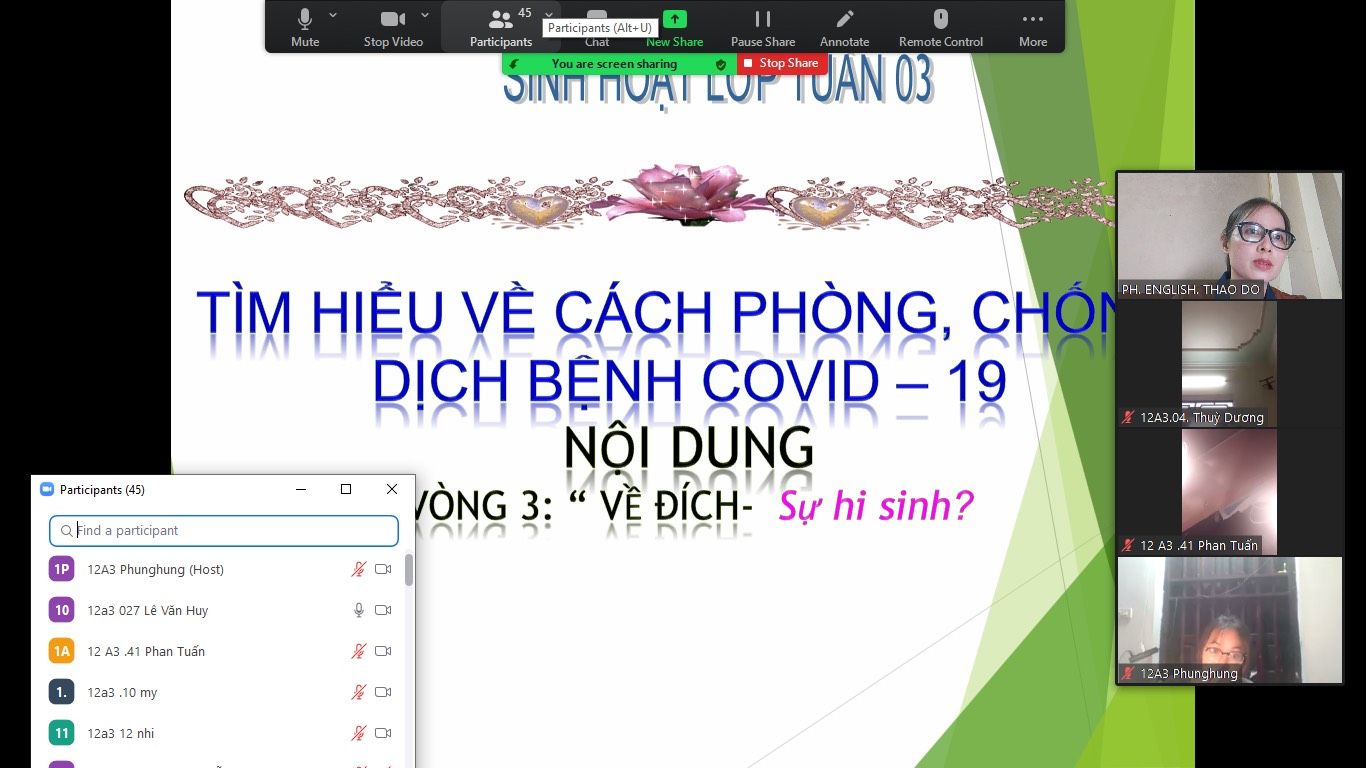 Tìm hiểu cách phòng chống dịch Covid -19 qua các vòng thi trong giờ sinh hoạt lớp 12A3