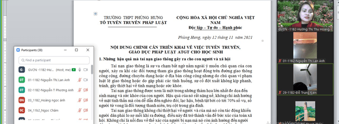 Giờ Sinh hoạt lớp trực tuyến với chủ đề ATGTcho học sinh tại lớp 11B2