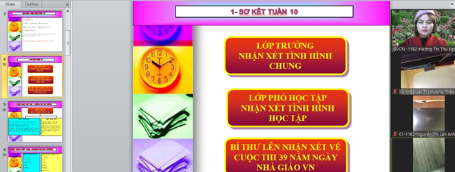 Tiếp theo là phần sơ kết lại tuần 10 của lớp
