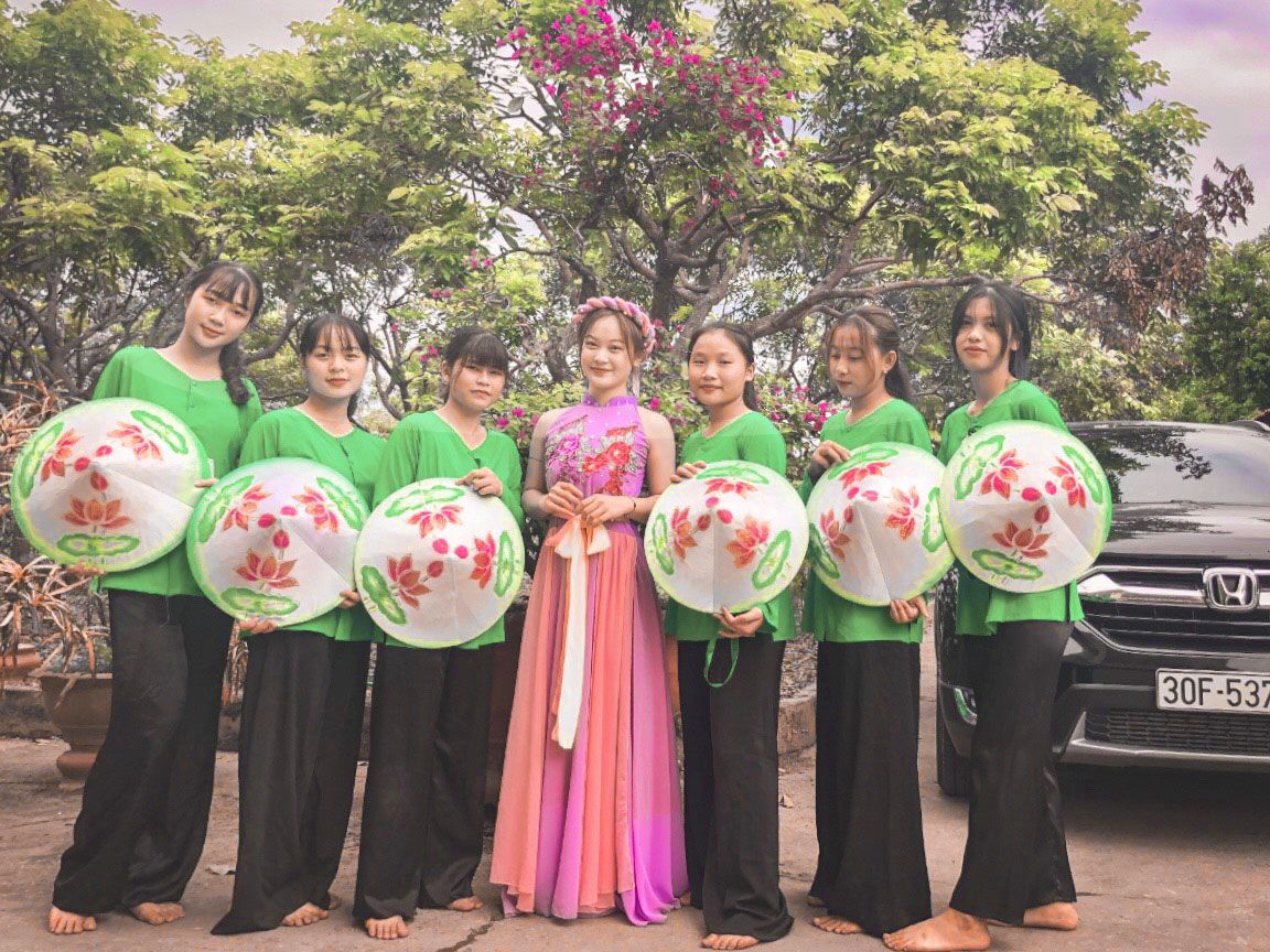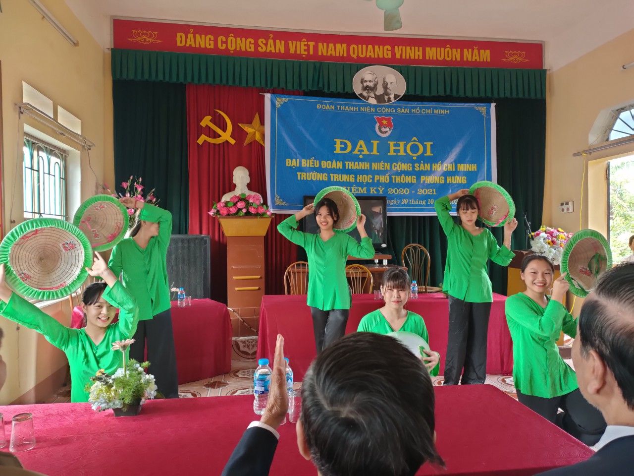Đội văn nghệ của các em học sinh trường THPT Phùng Hưng tham gia biểu diễn mừng Đại hội Đoàn