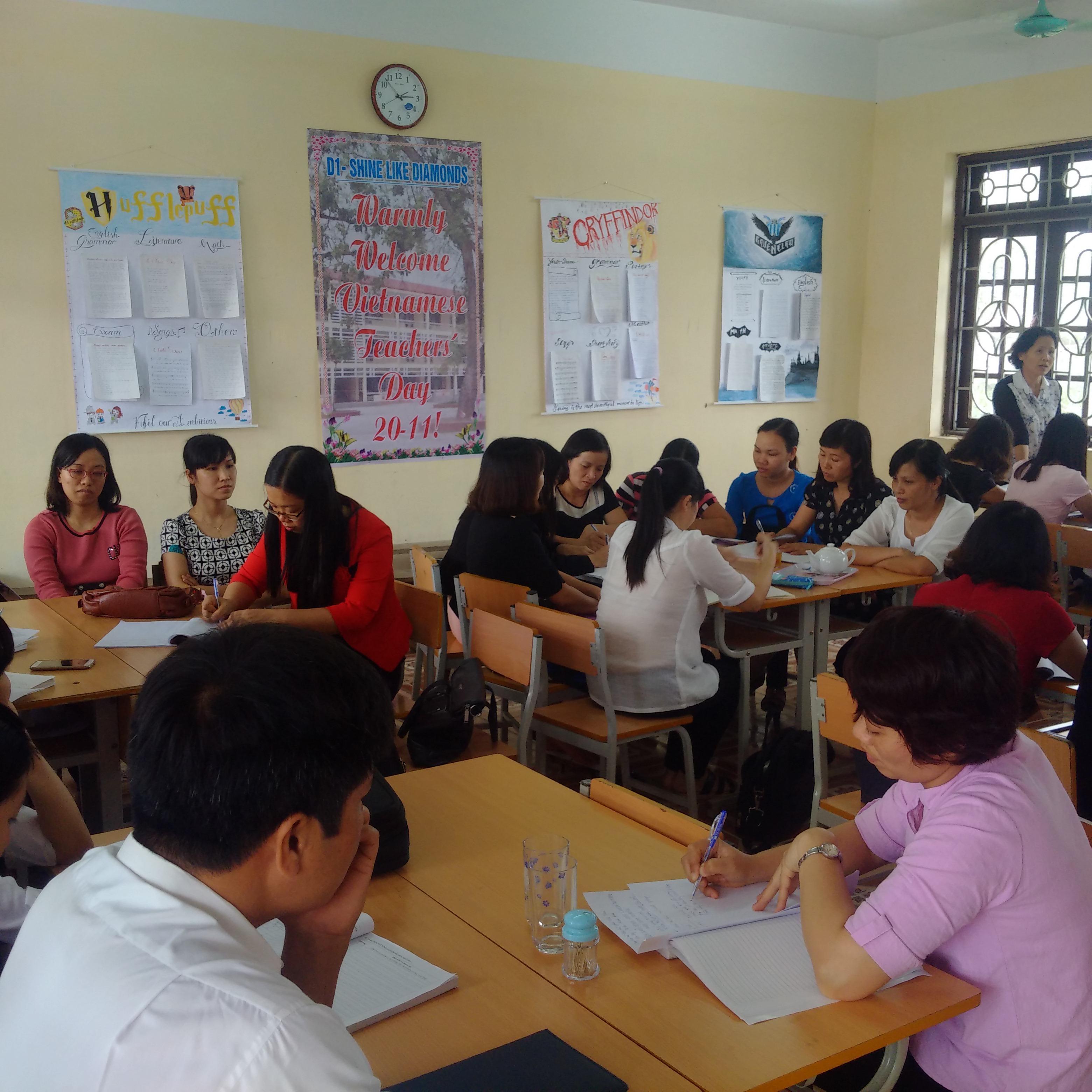 Không khí sôi nổi trong nội dung sinh oạt chuyên môn của các thầy cô giáo bộ môn Tiếng Anh