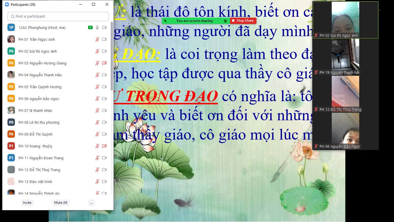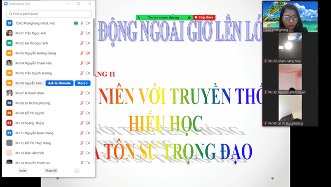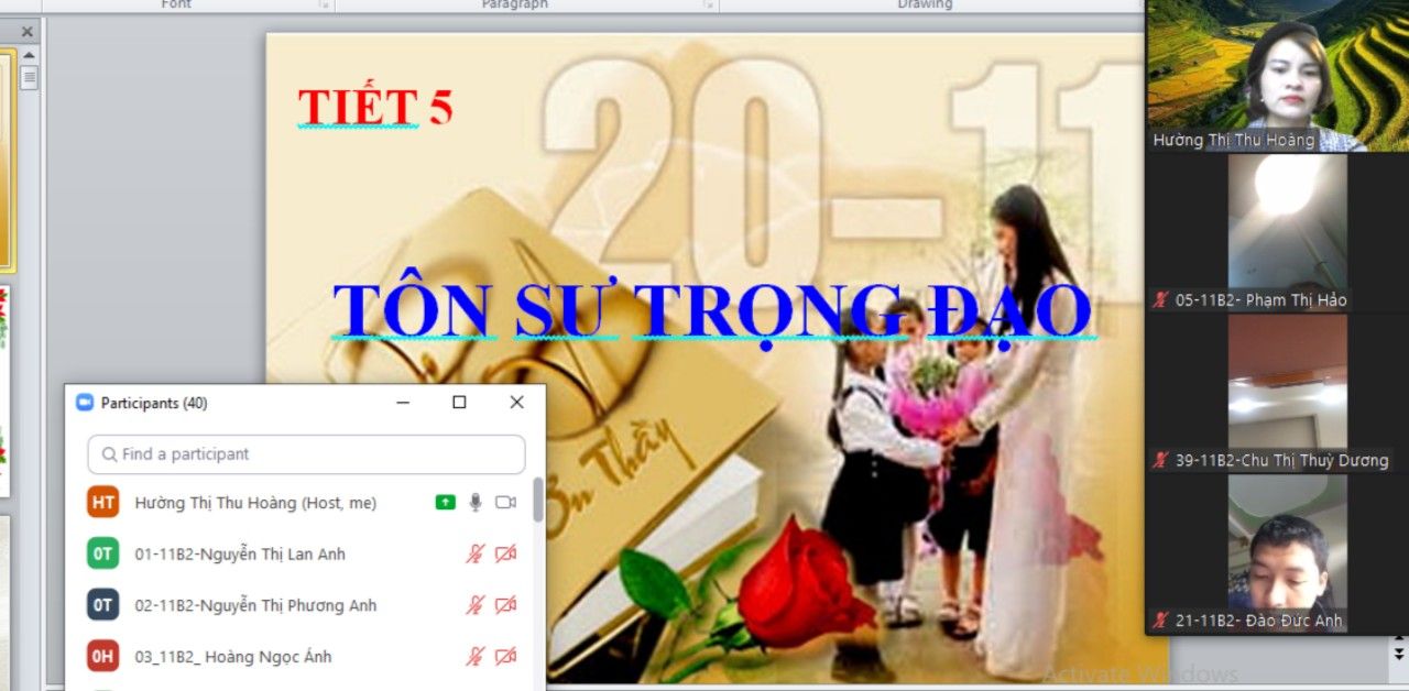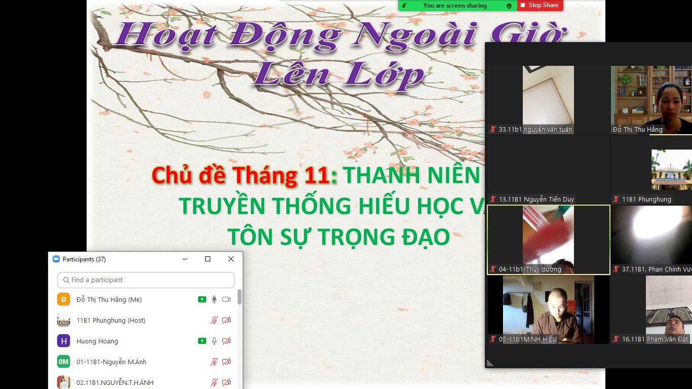 Tiết học ngoài giờ lên lớp trực tuyến với chủ đề tháng 11: “tôn sư trọng đạo”