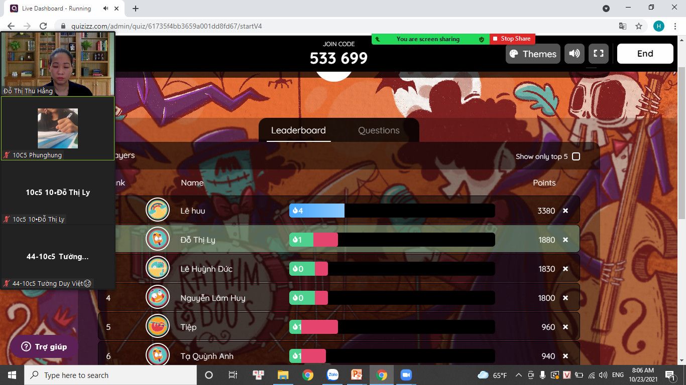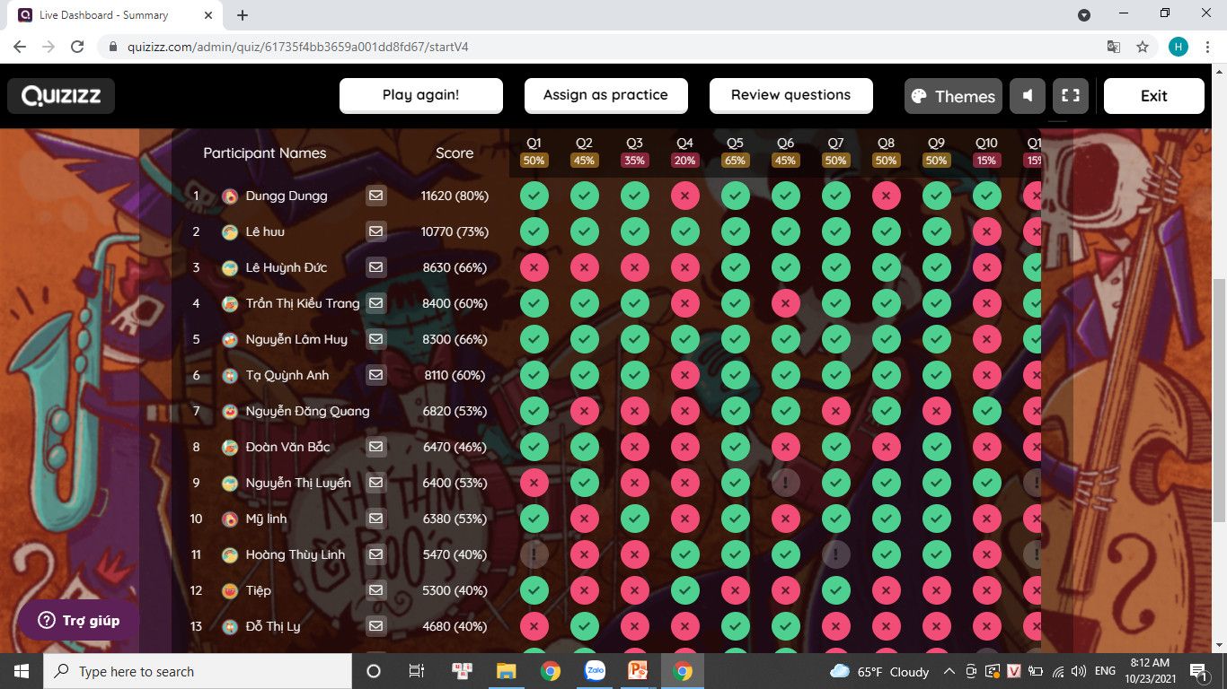 Tiết NGLL của lớp 11B1 với trò chơi được tổ chức trên QUIZIZZ.COM