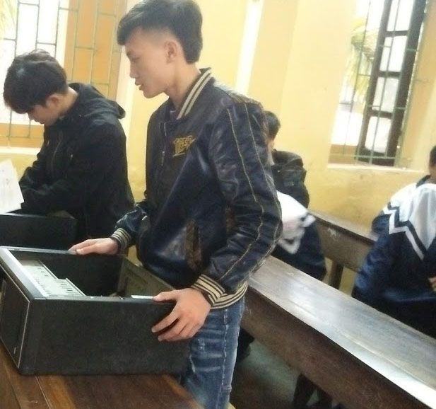 Các em lớp CNTT được thầy cô hướng dẫn thực hành sửa chữa máy tính